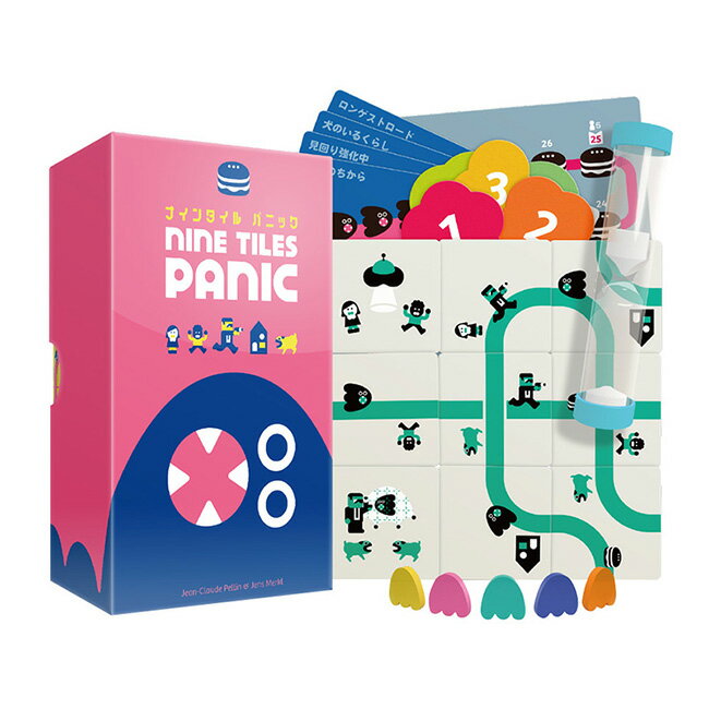 - 「ナインタイルパニック」は、9枚のタイルをつなげて町を作るスピードを競うゲームです。