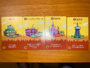 「駅」「ショッピングモール」「遊園地」「電波塔」のことで、これらは各プレイヤーの街の象徴となる建物です。